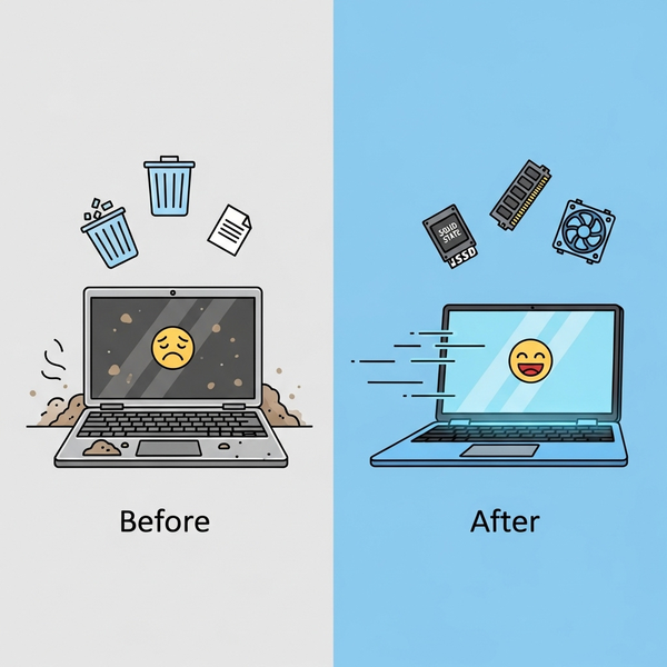 Ремонт ноутбуков с выездом на дом — моя ежедневная работа вот уже 10 лет. За это время я видел сотни «умирающих» устройств. И почти все их можно было оживить. Даже если вашему ноутбуку 8–10 лет — не спешите выкидывать его. Часто проблема не в «старости», а в накопленном мусоре, неправильных настройках или устаревшем железе. В этой статье я расскажу, как ускорить работу ноутбука на Windows 7, 10 и 11 — шаг за шагом. Вы получите всё: от диагностики до апгрейда. Без лишних слов. Только то, что действительно работает.