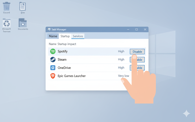 Я часто вижу, что в автозагрузке сидят OneDrive, Spotify, Steam, Discord — хотя пользователь включает их раз в неделю. Отключите их. Это ускорит загрузку Windows на 10–30 секунд.