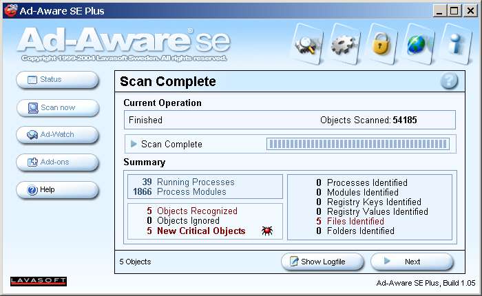 Вышло обновление к Ad-Aware. Помечено 05.02.2005