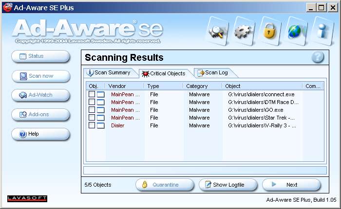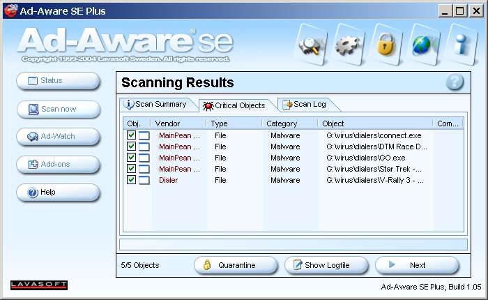 Иногда объектов бывает несколько десятков (неделю назад было 70). Категории опасных объектов также бывают разными. Насколько вредят работе компьютера эти объекты? При таких условиях необходимо ли продолжать пользоваться Ad-Aware SE Personal далее? Использовать Касперского 6.0 пока нет возможности.